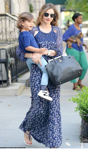 其实,翻看可儿的其它街拍,手上除了可爱的儿子小弗林,还有一枚腕表,而且两人的服饰也都是统一色系。
